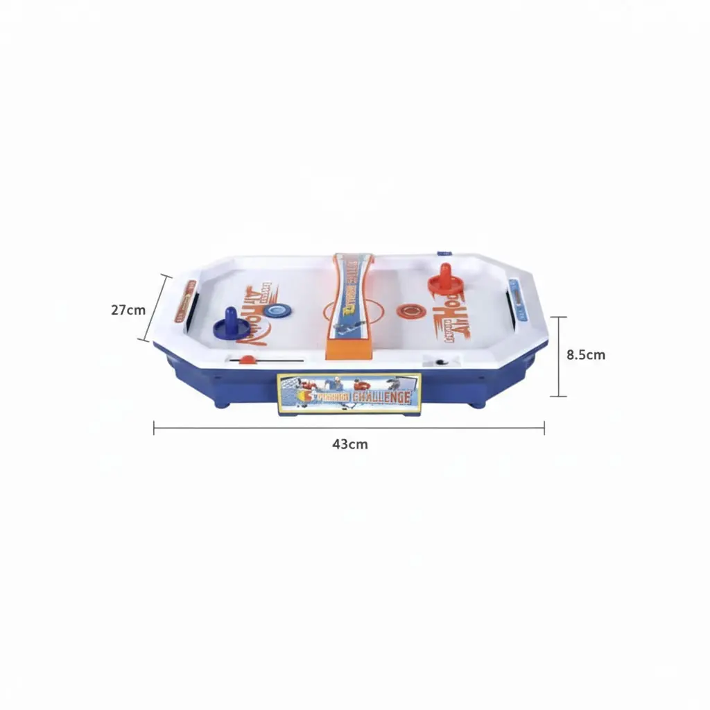 بدنه این بازیچه از مواد پلاستیکی باکیفیت و مستحکم ساخته شده است که در برابر ضربات ناشی از بازی‌های پرتحرک دوام بسیار بالایی دارد و سطح آن بسیار صیقلی طراحی شده تا پکه هاکی به راحتی روی آن حرکت کند. این ست شامل دو عدد دستگیره مخصوص برای بازیکنان و یک عدد پکه است که با رنگ‌های جذاب سرخ و آبی دیزاین شده‌اند تا هیجان یک رقابت واقعی را به اطفال منتقل کنند. ابعاد این محصول به گونه‌ای است که به راحتی روی هر میزی جای می‌گیرد و به دلیل وزن مناسب، جابجایی و نصب آن در هر گوشه از خانه بسیار آسان است؛ همچنین لبه‌های دستگاه کاملاً گرد و ایمن ساخته شده‌اند تا در هنگام بازی هیچ‌گونه آسیبی به دست‌های اطفال وارد نشود.