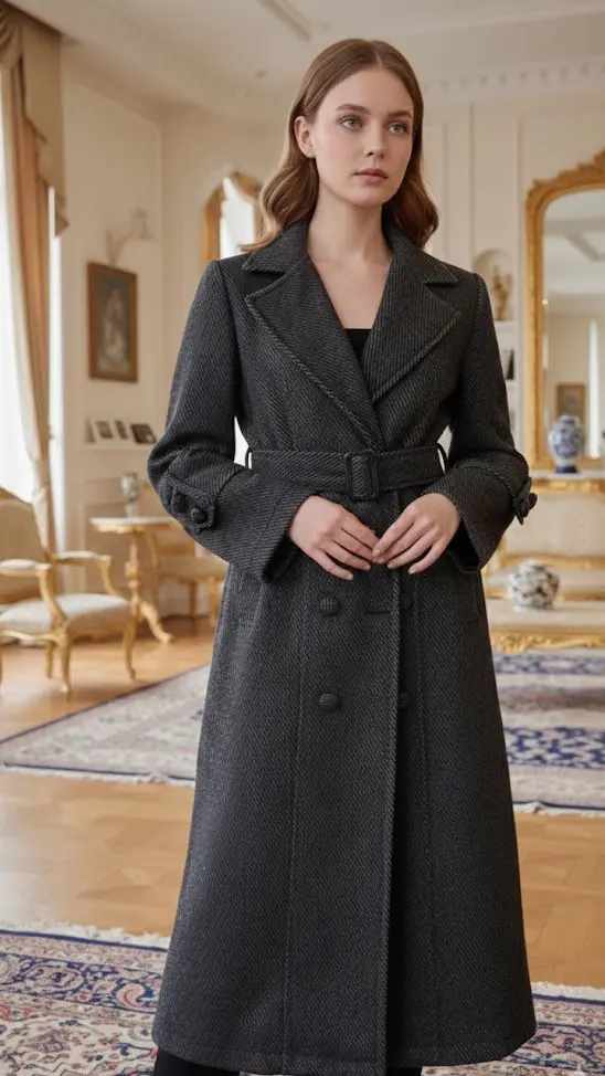 این بالاپوش مجلل با طراحی بلند و عصری، انتخابی استثنایی برای خانم‌هایی است که به دنبال استایلی متمایز و آراسته در فصل‌های سرد سال هستند. با توجه به طراحی و مشخصات این محصول، این کالا در سه سایز M, XL و XXL عرضه می‌گردد. این لباس با یقه انگلیسی پهن و رنگ خاکستری تیره، ظاهری رسمی و در عین حال مدرن به استایل شما می‌بخشد که برای محیط‌های کاری و محافل رسمی بسیار مناسب است.