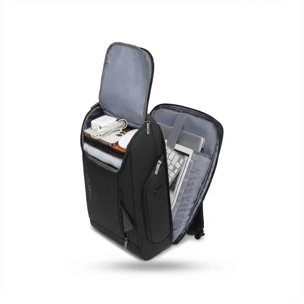 وقتی این کولهپشتی مشکی و مات را روی دوش میاندازید یا دسته محکم آن را در دست میگیرید، حس وقار و حرفهای بودن به استایل شما اضافه میشود. طراحی ظاهری این کیف با زیپهای عمودی در جلو و خطوط دوخت تمیز، آن را از کولههای معمولی متمایز کرده و جلوهای مدرن و اروپایی به آن بخشیده است. تصور کنید در یک سفر کاری هستید یا به سمت دانشگاه میروید؛ این کیف با تقسیمبندی هوشمندانه خود، لپتاپ، شارژر، کتابها و مدارک شما را به تفکیک و نظم کامل در خود جای میدهد، طوری که دیگر نیاز نیست برای پیدا کردن یک خودکار کل کیف را بگردید. بندهای دوشی این کوله با پدهای نرم و تنفسپذیر پوشیده شدهاند که حتی در استفاده طولانیمدت و زمانی که کیف سنگین است، فشاری به شانههای شما وارد نمیکنند. قابلیت ضد آب بودن آن نیز به شما این اطمینان را میدهد که در هر شرایط آب و هوایی، فایلها و لوازم الکترونیکی شما در پناهگاهی امن و خشک قرار دارند. این کولهپشتی فقط یک وسیله حمل بار نیست، بلکه بخشی از شخصیت منظم و شیکپوش شماست.