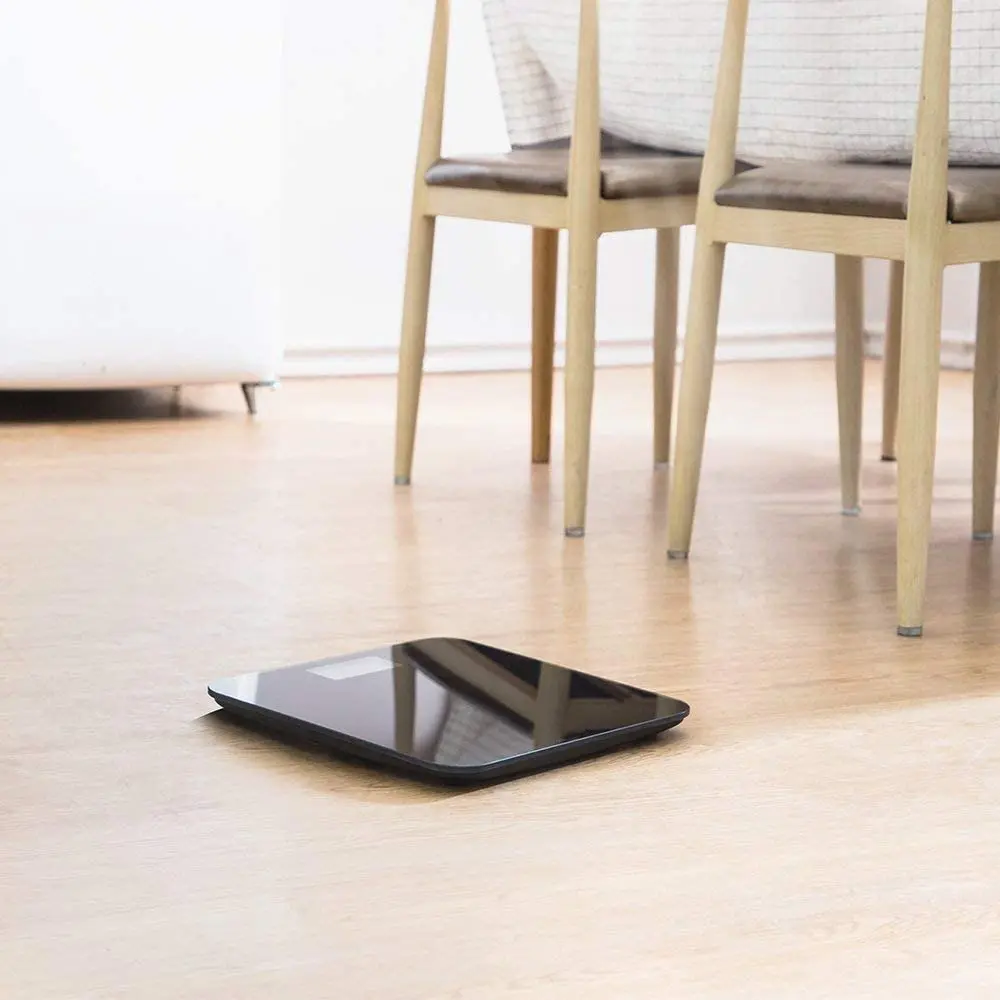 این ترازو با آن رنگ مشکی براق و خطوط منحنی سفید که مانند طرحی از ساعت شنی روی آن نقش بسته، فراتر از یک ابزار پزشکی ساده است و به عنوان یک اکسسوری مدرن در دکوراسیون اتاق خواب یا حمام شما می‌درخشد. ضخامت بسیار کم (Slim Design) این محصول باعث می‌شود بتوانید به راحتی آن را زیر تخت، کمد یا قفسه‌های روشویی جا دهید بدون اینکه فضای زیادی اشغال کند. صفحه شیشه‌ای صیقلی آن نه تنها ظاهری لوکس دارد، بلکه نظافت آن نیز بسیار آسان است و با یک دستمال مرطوب مثل روز اول می‌درخشد. اعداد روی نمایشگر به قدری واضح هستند که حتی در نور کم یا از فاصله ایستاده نیز به راحتی خوانده می‌شوند. این ترازوی هوشمند و زیبا، انگیزه شما را برای حفظ تناسب اندام و رسیدن به وزن ایده‌آل همیشه زنده نگه می‌دارد.