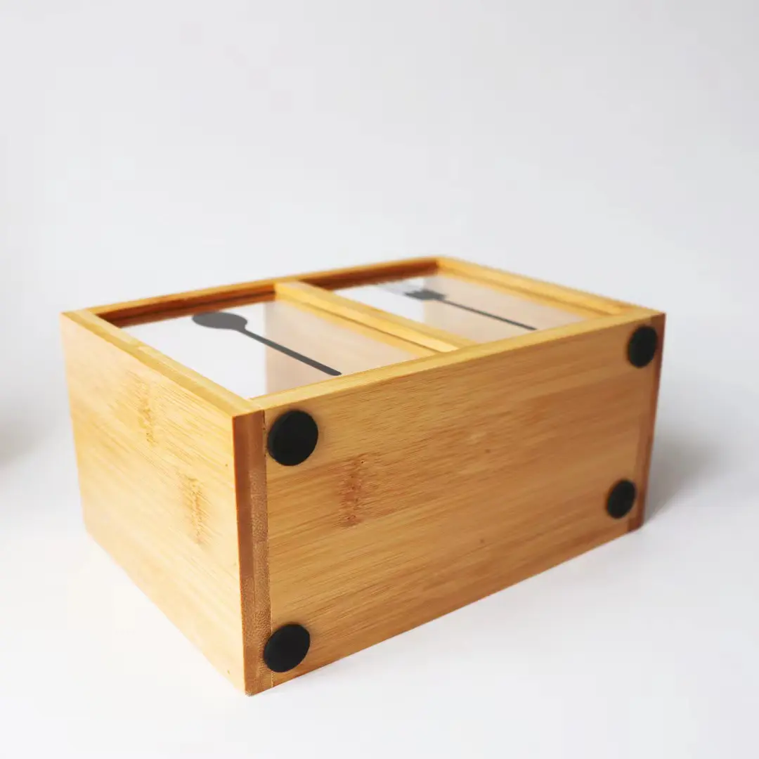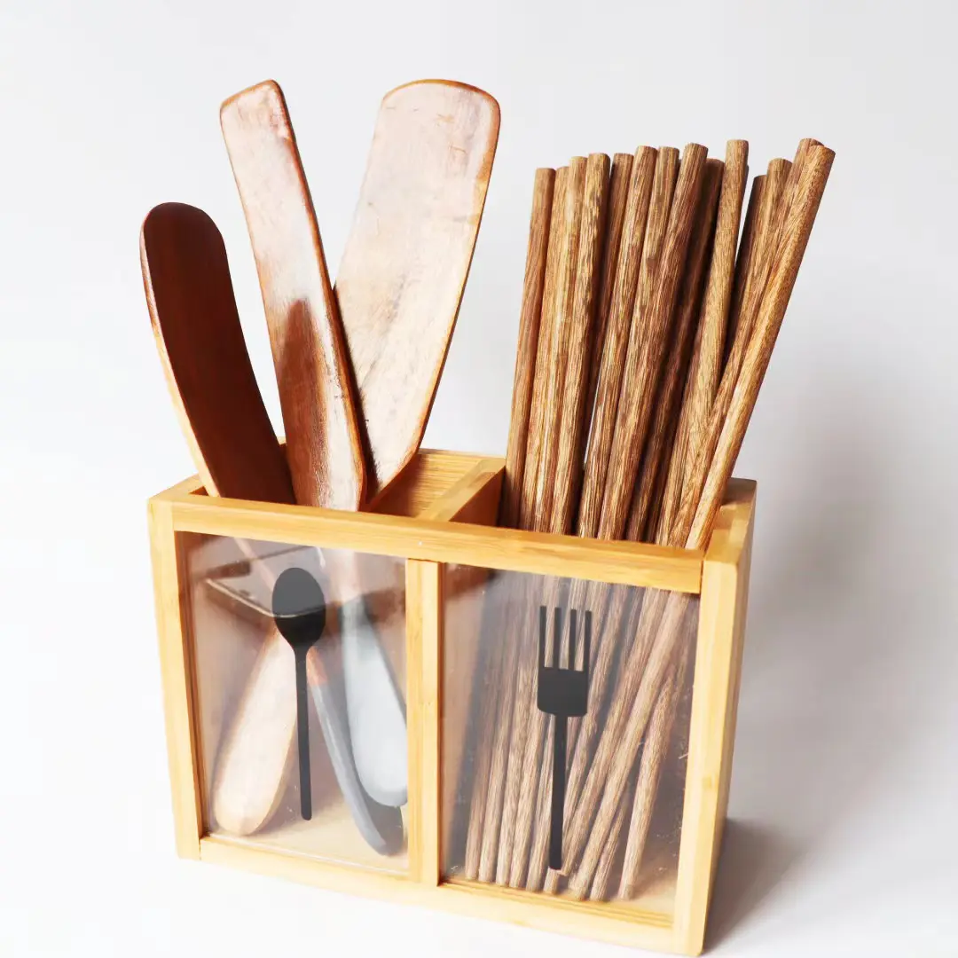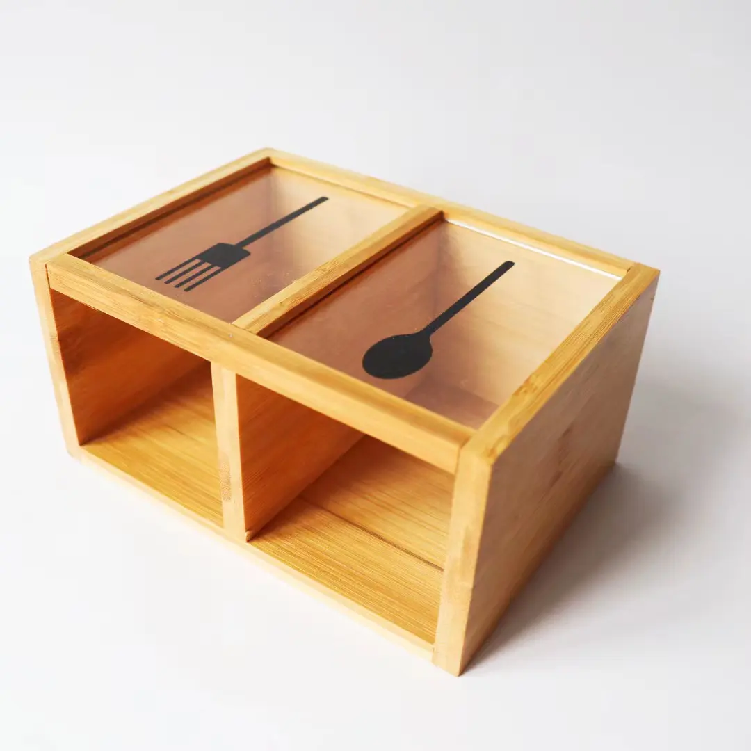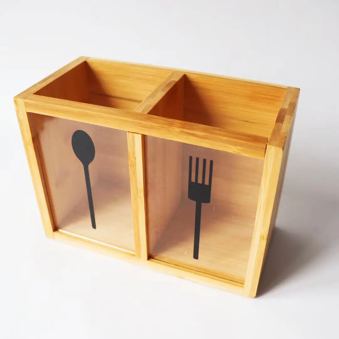 این جاقاشقی دارای دو بخش مجزا برای تفکیک قاشق، پنجه یا چوبهای غذاخوری (چاپستیک) است که سازماندهی وسایل را آسانتر میسازد. در قسمت جلویی محصول، دو قطعه شیشهای یا شفاف تعبیه شده که بر روی آنها آیکونهای قاشق و پنجه برای راهنمایی بهتر حک شده است. دیوارههای چوبی این محصول صیقلخورده و دارای لبههای نرم هستند تا از آسیب به دست جلوگیری شود و به دلیل ساختار مستحکم، تعادل بسیار خوبی بر روی سطوح صاف دارد.