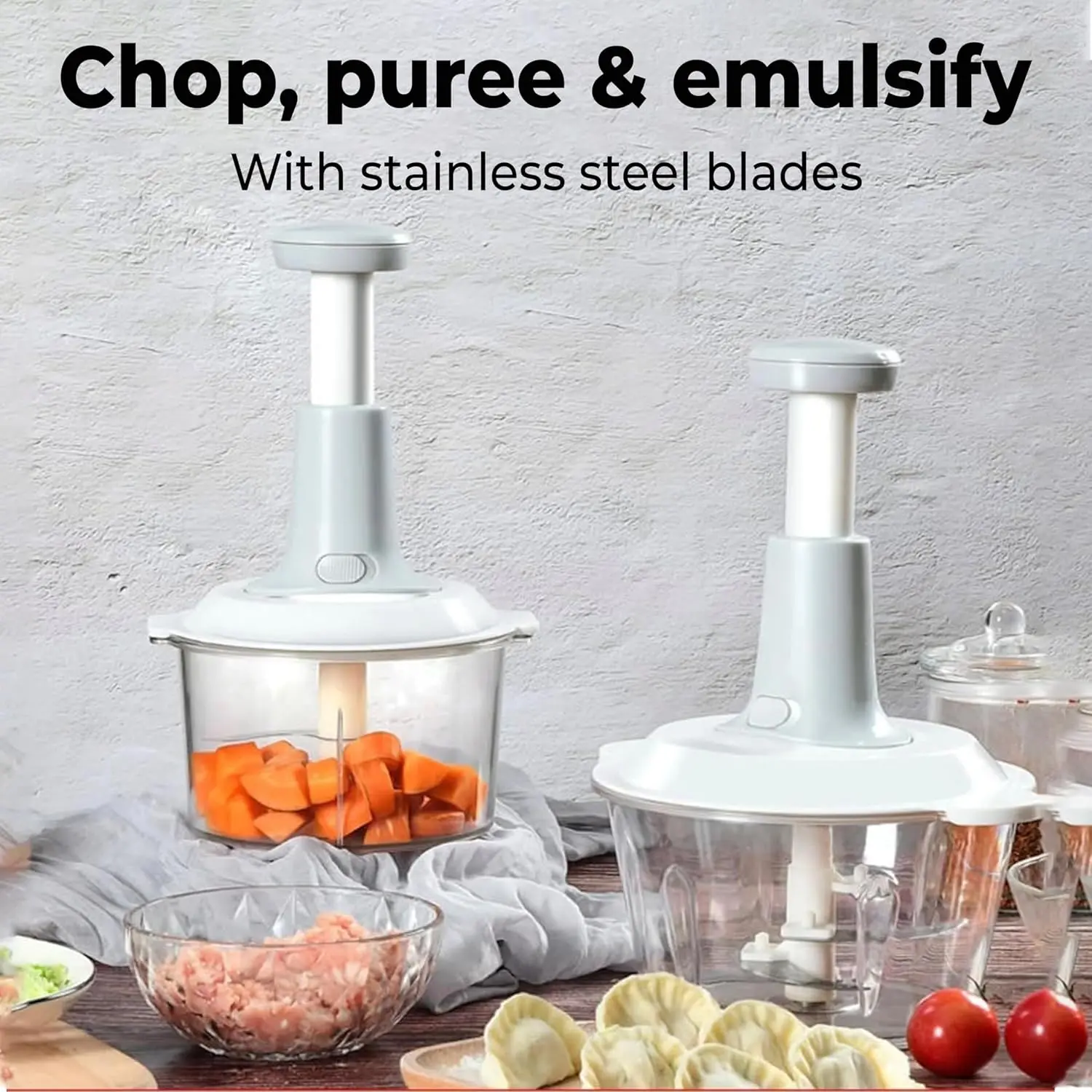 برای کسانی که به دنبال یک وسیله ساده، بیصدا و در عین حال بسیار کاربردی برای آشپزخانه خود هستند، این ماشین خردکن دستی یک انتخاب بینظیر است. این دستگاه با ظرفیت مناسب ۲ لیتر، فضای کافی برای خرد کردن حجم قابل توجهی از مواد غذایی را دارد. ویژگی برجسته این محصول، کارکرد کاملاً دستی آن است که بدون نیاز به برق یا باتری، تنها با فشار دادن دسته بالایی عمل میکند؛ با هر بار فشار شما، تیغههای داخل ظرف به چرخش درآمده و مواد را به سرعت خرد میکنند. تیغههای این دستگاه از فولاد بسیار تیز، مقاوم و ضد زنگ ساخته شدهاند که طول عمر بالای آن را تضمین میکنند.