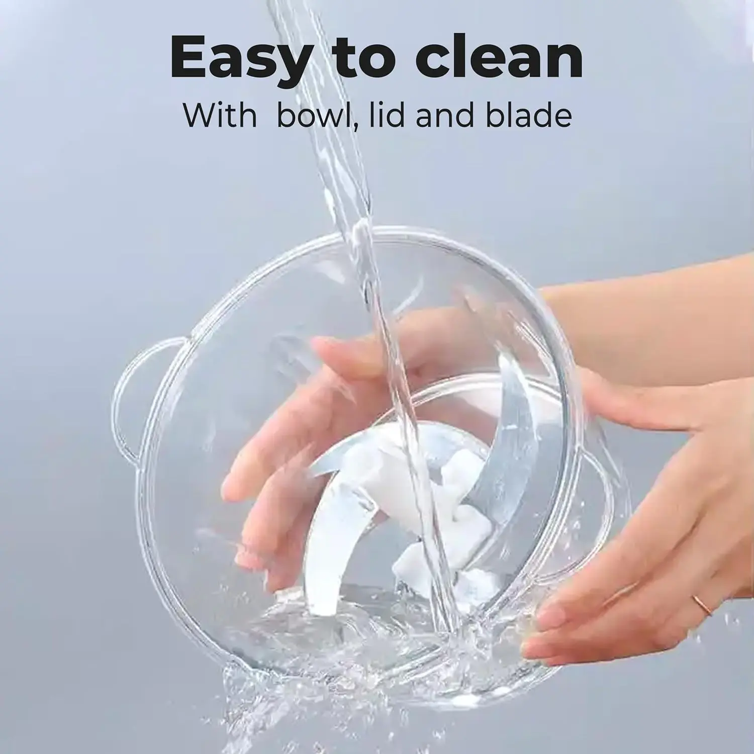 ظاهر این دستگاه با بدنه شفاف و دسته سفید رنگ، به شما اجازه میدهد تا میزان خرد شدن مواد را به خوبی مشاهده و کنترل کنید. همانطور که در تصویر میبینید، طراحی این خردکن به گونهای است که به راحتی در هر مکان (حتی در سفر و پیکنیک که برق در دسترس نیست) قابل استفاده است. این وسیله برای خرد کردن انواع سبزیجات، پیاز، گوشت، میوهها و حتی تهیه انواع سالاد و غذاهای مختلف بسیار عالی است. شستشوی قطعات آن بسیار راحت بوده و به دلیل وزن سبک و طراحی جمعوجور، جای بسیار کمی را در آشپزخانه اشغال میکند. با داشتن این خردکن، دیگر نگران سوزش چشم هنگام خرد کردن پیاز یا بریدن دست با کارد نخواهید بود.