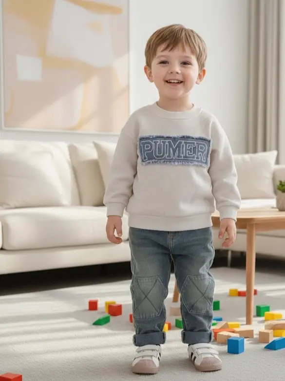 این ست لباس جدید و شیک شامل یک بلوز آستینبلند با طرح گرافیکی "PUMER" و یک پتلون کوبایی (لی) است که برای فصل خزان و ایام عید طراحی شده است. بر اساس اطلاعات درج شده در تصویر، این محصول برای رده سنی ۱ سال الی ۵ سال کاملاً مناسب بوده و استایلی مدرن و مرتب را برای کودکان فراهم میسازد. ترکیب رنگ روشن بلوز با پتلون لی تیره، تضاد زیبایی ایجاد کرده است که برای محافل و استفاده روزمره انتخابی عالی میباشد.