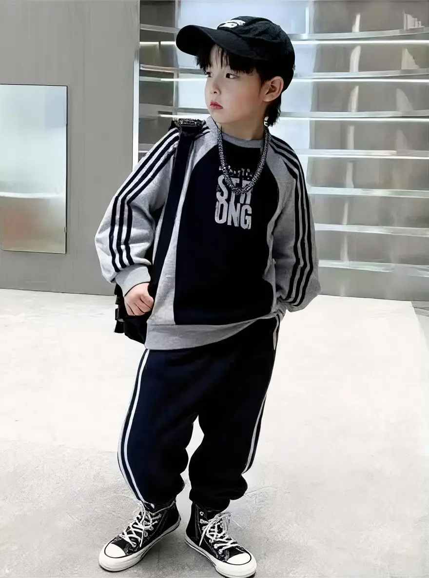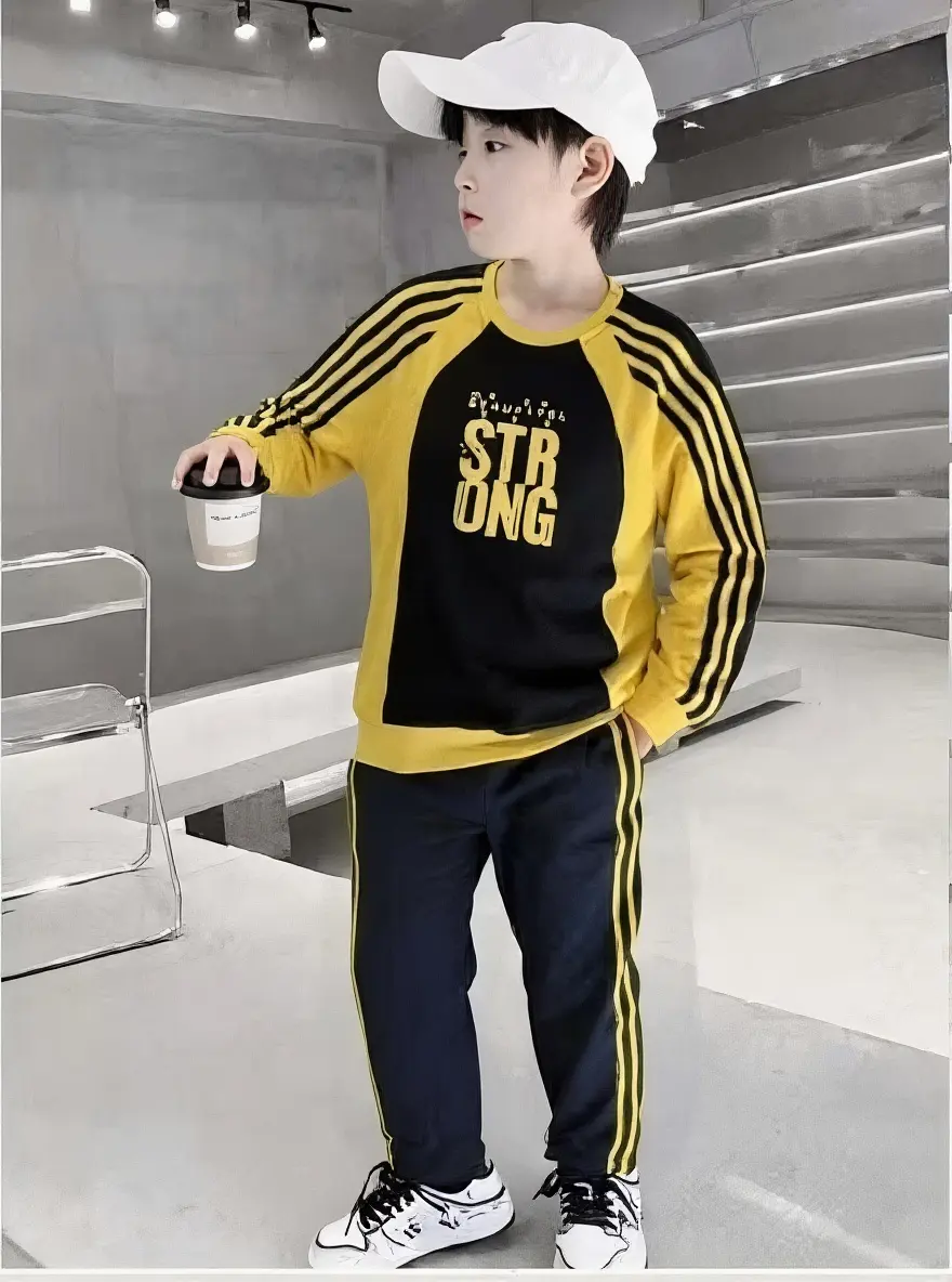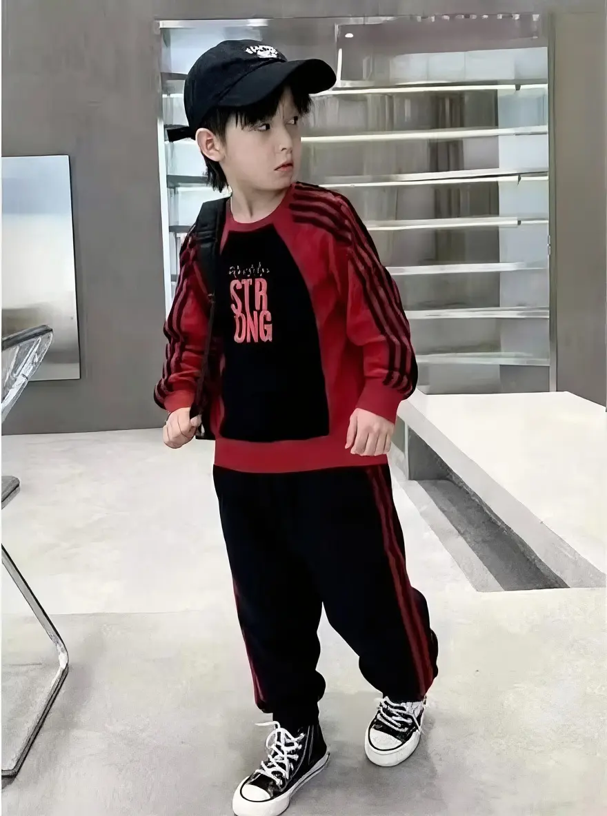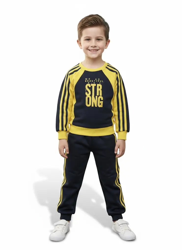 این ست دو تکه با طراحی داینامیک و الهام گرفته از استایل‌های ورزشی مدرن، انتخابی هوشمندانه برای روزهای پرتحرک و ایجاد استایلی شیک و اسپرت برای پسران خردسال است. این لباس برای سنین ۱ سال الی ۶ سال بسیار مناسب بوده و به دلیل برش‌های استاندارد و طراحی چندرنگ، جلوه‌ای دوست‌داشتنی و باوقار به ظاهر فرزند شما می‌بخشد که انرژی و اعتماد به نفس خاصی را به استایل او در هنگام ورزش، بازی و گشت‌وگذارهای شهری اضافه می‌کند. در این پوشش منحصر‌به‌فرد هماهنگی میان بلوز آستین رگلان با چاپ گرافیکی "STRONG" و پتلون اسلش هماهنگ با خطوط جانبی، استایلی جذاب و متمایز را فراهم می‌سازد که به خوبی روحیه پویا و فعال کودکان را منعکس می‌کند.