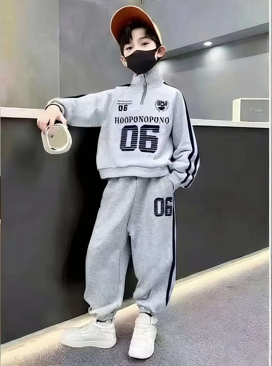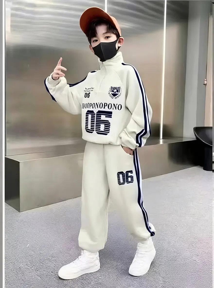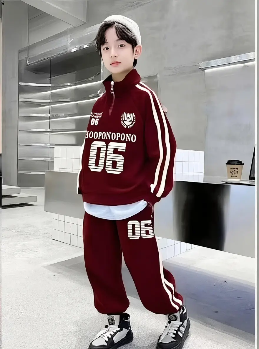 این ست دو تکه با طراحی الهام گرفته از استایل‌های خیابانی و ورزشی مدرن، انتخابی هوشمندانه برای روزهای پرتحرک و ایجاد استایلی شیک و باوقار برای پسران خردسال و نوجوان است. این لباس برای سنین ۱ سال الی ۶ سال بسیار مناسب بوده و به دلیل برش‌های آزاد و طراحی گرافیکی جذاب، جلوه‌ای دوست‌داشتنی و باوقار به ظاهر فرزند شما می‌بخشد که انرژی و اعتماد به نفس خاصی را به استایل او در هنگام بازی، فعالیت‌های ورزشی و گشت‌وگذارهای روزمره اضافه می‌کند. در این پوشش منحصر‌به‌فرد هماهنگی میان بلوز یقه نیم‌زیپ با چاپ عدد "06" و پتلون اسلش با خطوط کناری متضاد، استایلی جذاب و متمایز را فراهم می‌سازد که به خوبی روحیه پویا و مدرن کودکان امروزی را به نمایش می‌گذارد.
