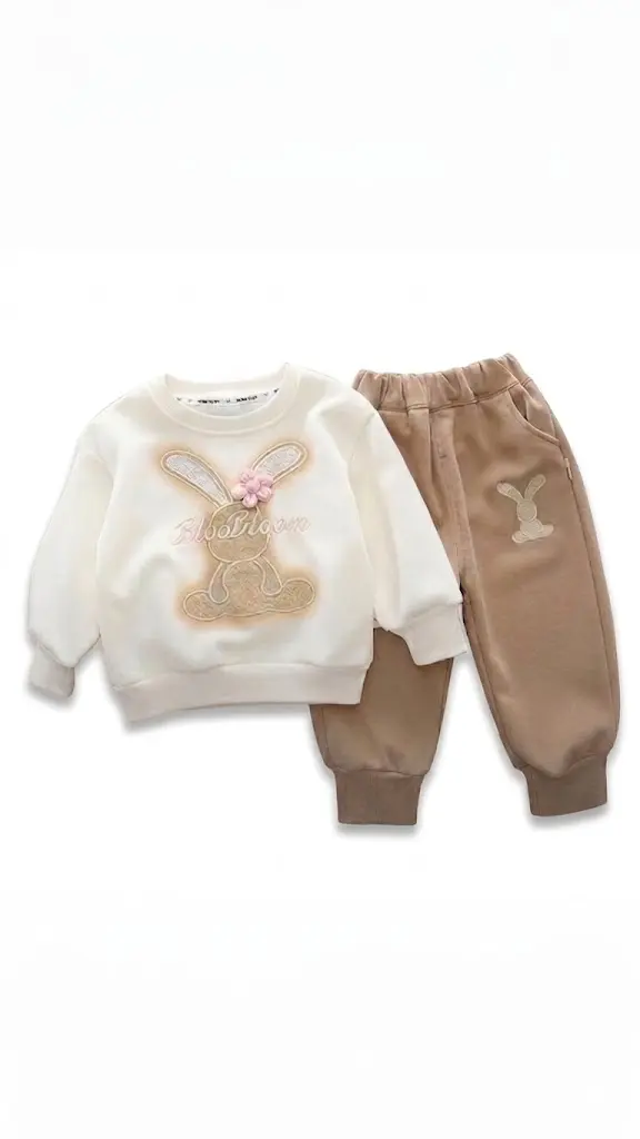 این ست دو تکه با رنگ سفید و خاکی ملایم انتخابی ایده‌آل برای روزهای خنک خزانی و استایل آراسته کودکان خردسال است. این لباس برای سنین ۱ سال الی ۶ سال بسیار مناسب بوده و به دلیل طراحی هوشمندانه جلوه‌ای دوست‌داشتنی و باوقار به ظاهر فرزند شما می‌بخشد. در این پوشش منحصر‌به‌فرد هماهنگی میان بلوز دورس آراسته به طرح برجسته خرگوش با گل تزیینی و شلوار ست با گلدوزی هماهنگ استایلی جذاب و متمایز را فراهم می‌سازد.