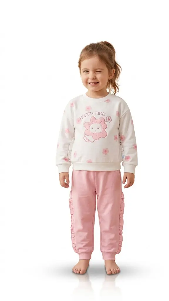 این ست دو تکه با رنگ سفید و صورتی ملایم انتخابی عالی برای روزهای بهاری و استایل شاد و خانگی دختران خردسال است. این لباس برای سنین ۲ سال الی ۶ سال بسیار مناسب بوده و به دلیل طراحی هوشمندانه جلوهای دوستداشتنی و باوقار به ظاهر فرزند شما میبخشد. در این پوشش منحصربهفرد هماهنگی میان بلوز دورس آراسته به طرح گل خندان و شلوار صورتی با تزئینات چیندار استایلی جذاب و متمایز را فراهم میسازد.