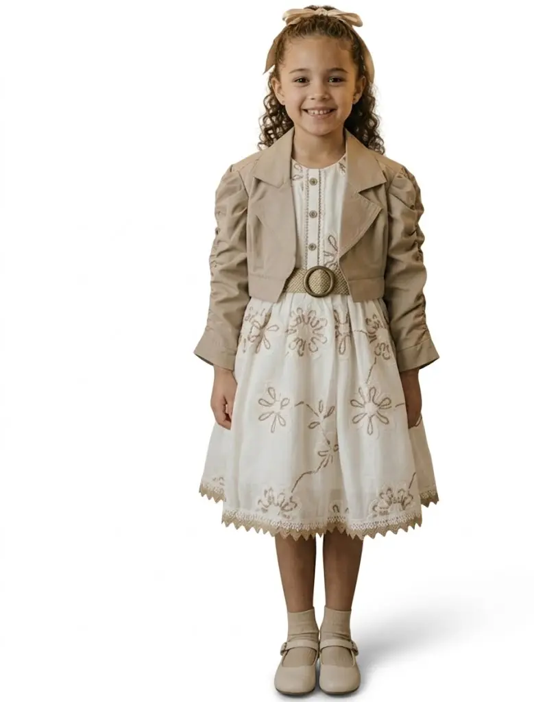 این ست دو تکه با ترکیب رنگ سفید شیری و کرتی کرمی با وقار، انتخابی اشرافی و بینظیر برای دختران نوجوان در مراسمهای رسمی، جشنهای عروسی و مناسبتهای خاص است که استایلی کلاسیک و اروپایی را تداعی میکند. این لباس برای سنین ۶ سال الی ۱۲ سال بسیار مناسب بوده و به دلیل طراحی بسیار دقیق و استفاده از پارچههای بافتدار، جلوهای دوستداشتنی و باوقار به ظاهر فرزند شما میبخشد که متانت خاصی را به شخصیت او اضافه میکند. در این پوشش منحصربهفرد هماهنگی میان پیراهن کتان گلدوزی شده با طرحهای گلافشان بزرگ و کرتی (کت) کوتاهی که با آستینهای چیندار و یقه انگلیسی آراسته شده است، استایلی جذاب و متمایز را فراهم میسازد که فرزند شما را در هر محفلی به عنوان یک پرنسس واقعی معرفی میکند.