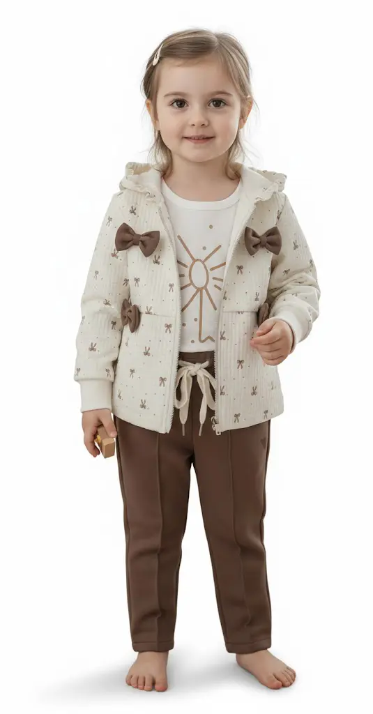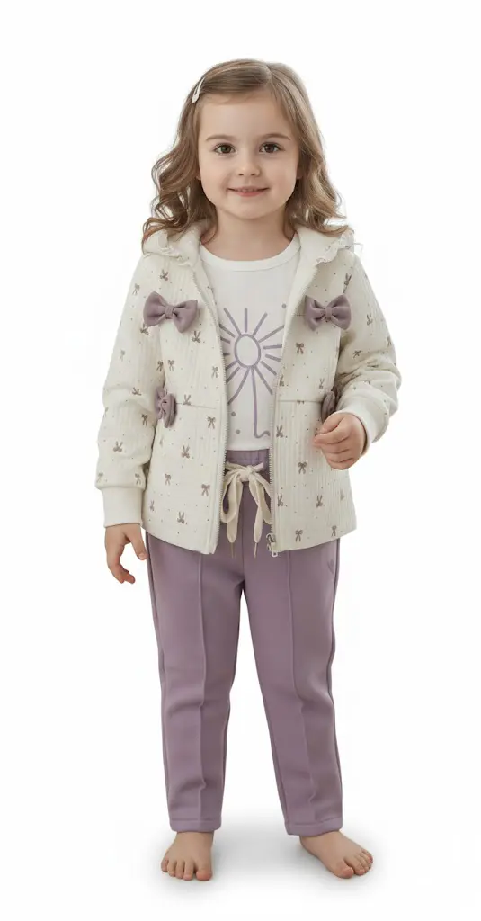 این ست لباس جدید و شیک دخترانه برای رده سنی ۲ سال الی ۵ سال طراحی شده است و در سه رنگبندی زیبا شامل قهوهای، صورتی و بنفش عرضه میشود. این مجموعه شامل یک ژاکت بافتنی ظریف با تزئینات پاپیونی، یک تیشرت طرحدار و یک شلوار هماهنگ است که ترکیبی ایدهآل برای استایلهای مجلسی و روزمره کودکان در فصول خنک فراهم میکند.