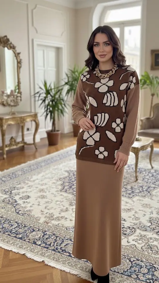 این ست دو تکه شامل یک پیراهن جاکتی با طرح گلهای بزرگ و یک دامن بلند هماهنگ است که استایلی کلاسیک و در عین حال عصری را برای خانمها فراهم میسازد. با توجه به طراحی و مشخصات این محصول، این کالا در سه سایز XL, XLL, M عرضه میگردد. ترکیب رنگ قهوهای و نصواری در این لباس، آن را به گزینهای ایدهآل برای استفاده در محافل نیمهرسمی و روزمره در فصلهای معتدل تبدیل کرده است.