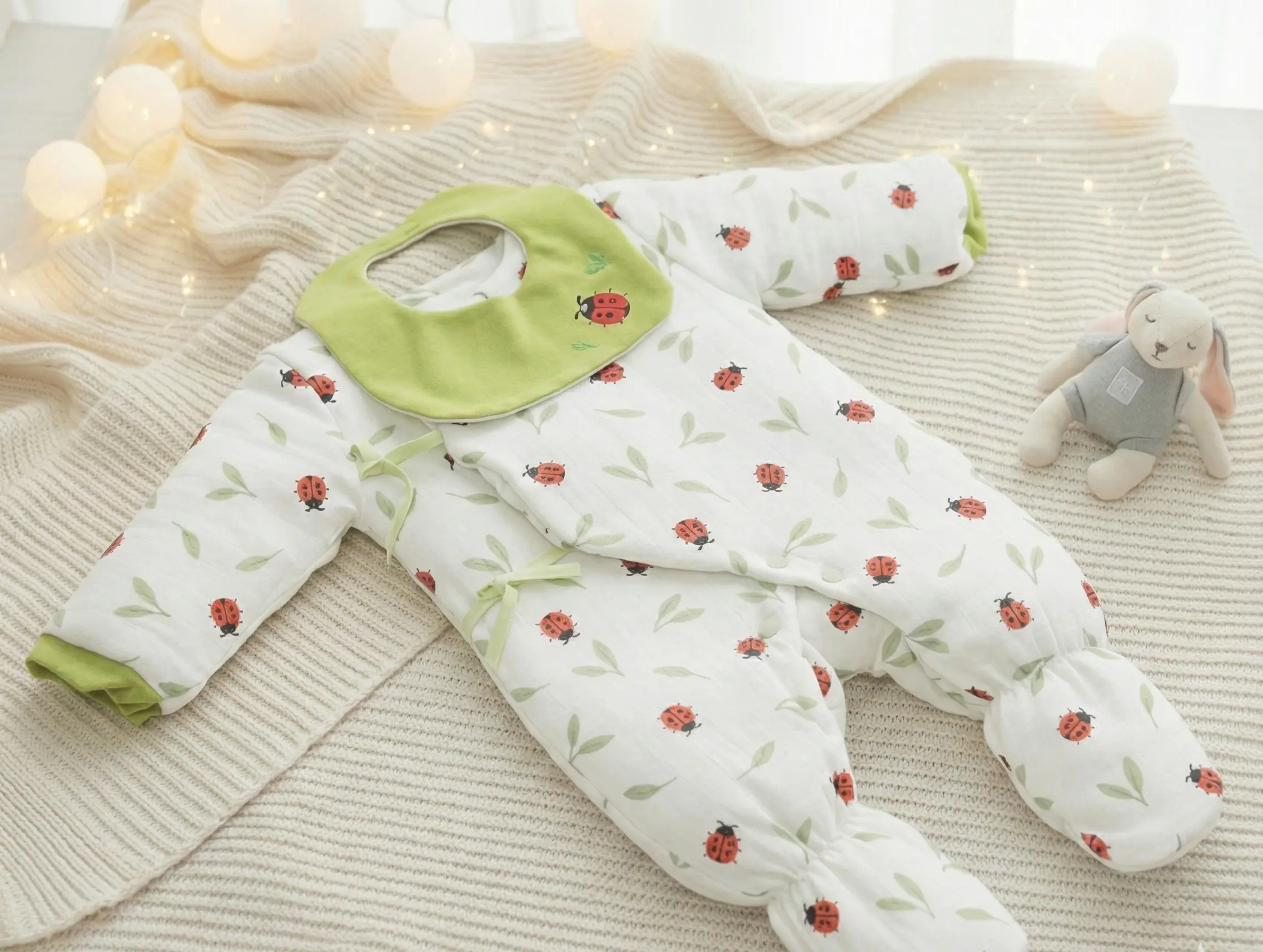 تصور کنید فرزند عزیزتان در سنین ۲ تا ۹ ماهگی این سرهمی جذاب را پوشیده است؛ ترکیب رنگ سفید و سبز ملایم با خال‌های قرمز کفشدوزک، چهره معصوم کودک را روشن‌تر و دوست‌داشتنی‌تر نشان می‌دهد. این لباس انتخابی عالی برای عکاسی ماهگرد، مهمانی‌های خانوادگی و حتی استفاده روزمره در منزل است، زیرا در عین شیک بودن، آزادی حرکت کامل را به دست و پای نوزاد می‌دهد. طرح کفشدوزک نماد شانس و شادی است و وقتی فرزندتان با این لباس لبخند می‌زند، گویی تکه‌ای از طبیعت و بهار را به خانه آورده‌اید. اگر به دنبال لباسی هستید که هم گرم و راحت باشد و هم استایلی متفاوت و مدرن به فرزندتان بدهد، این ست پف‌دار و زیبا بهترین گزینه برای تکمیل سیسمونی و کمد لباس اوست.