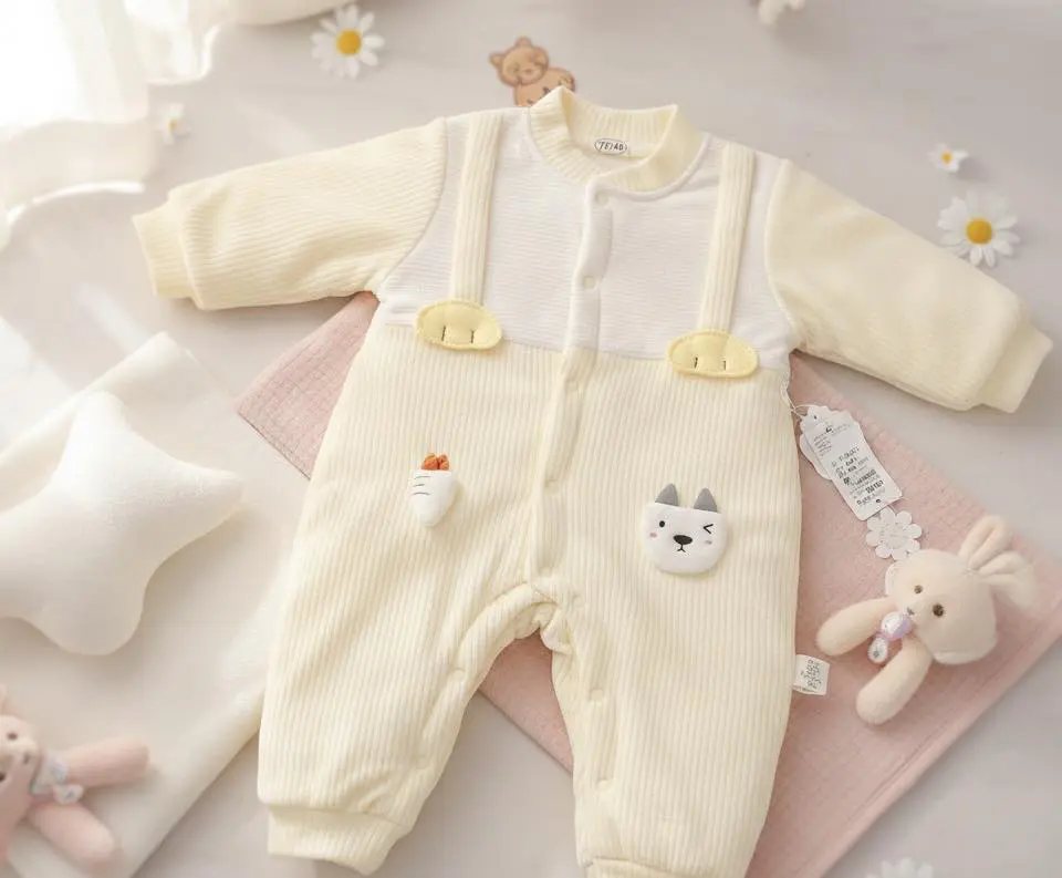 تصور کنید فرزند عزیزتان در سنین ۲ تا ۹ ماهگی این سرهمی لیمویی خوش‌رنگ را پوشیده است؛ رنگ زرد نماد شادی و نور است و وقتی با چهره معصوم کودک ترکیب می‌شود، درخششی بی‌نظیر ایجاد می‌کند که برای عکاسی و ثبت خاطرات عالی است. آن عروسک‌های برجسته گربه و هویج، نه‌تنها ظاهری بانمک به لباس می‌دهند، بلکه توجه نوزاد را نیز جلب کرده و حس لامسه او را تحریک می‌کنند. این لباس با طراحی خاص و مدرن خود، استایلی متفاوت از لباس‌های راحتی معمول به فرزندتان می‌بخشد و او را در هر جمعی آراسته و خوش‌پوش نشان می‌دهد. اگر به دنبال لباسی هستید که گرما، راحتی و زیبایی را یکجا داشته باشد، این ست "پیشی و هویج" بهترین انتخاب برای کمد لباس اوست.