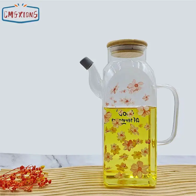 این ظرف از جنس شیشه باکیفیت ساخته شده و مجهز به یک درپوش چوبی تخت است که به خوبی روی دهانه قرار می‌گیرد. خروجی روغن به صورت یک نل باریک و مایل طراحی شده که دارای یک پوشش محافظ کوچک در قسمت نوک است تا از چکیدن روغن و ورود آلودگی جلوگیری کند. بدنه شیشه‌ای آن با نقوش گل‌های کوچک به رنگ‌های پاییزی تزئین شده و به دلیل ساختار عمودی و دسته کشیده، فضای کمی را اشغال کرده و به راحتی با یک دست قابل مدیریت است.