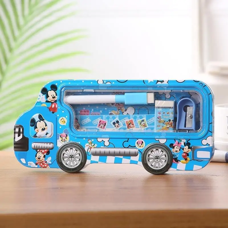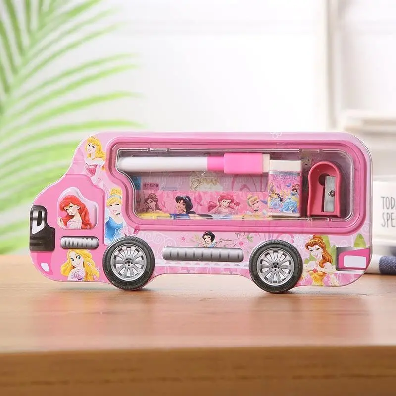 تصور کنید فرزندتان این اتوبوس فلزی زیبا را روی میز تحریر خود میگذارد؛ ظاهر آن دقیقاً شبیه یک اسباببازی جذاب با چرخهای نقرهای و پنجرههای شفاف است که شخصیتهای کارتونی محبوب (مثل پرنسسها) از داخل آن به بیرون نگاه میکنند. طراحی دو طبقه این جامدادی به کودک کمک میکند تا مدادها و خودکارهایش را در طبقه بالا و وسایل ریزتر مثل پاککن و تراش را در طبقه پایین دستهبندی کند، بنابراین دیگر خبری از گم شدن وسایل در اعماق کیف نیست. چرخهای این اتوبوس نمادین هستند و حس حرکت و پویایی را منتقل میکنند؛ کودک میتواند در زنگ تفریح با آن بازی کند و در زمان درس، با ذوق و شوق درب آن را باز کرده و ابزار نوشتن خود را بردارد. این محصول هوشمندانه، مرز بین سرگرمی و آموزش را از بین برده و انجام تکالیف را از یک وظیفه خستهکننده به یک ماجراجویی شیرین تبدیل میکند.