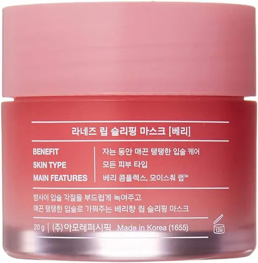این محصول یک بالم لب معمولی نیست؛ بلکه یک درمان قوی است که سرشار از ویتامین C و آنتیاکسیدانهای گرفته شده از انواع توتها (Raspberry & Strawberry) میباشد. تکنولوژی خاص این ماسک با داشتن هیالورونیک اسید، یک لایه محافظ روی لب ایجاد میکند تا رطوبت را تمام شب حفظ کند. این ماسک پوستهای مرده و خشک روی لب را ذوب کرده و برای درمان ترکخوردگی لبها معجزه میکند. (تضمین ۱۰۰٪ محصول اصل).