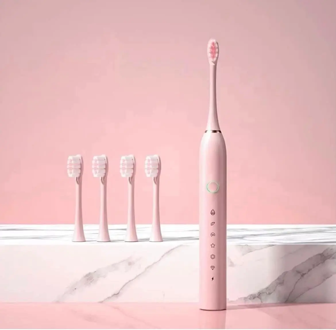 برای داشتن دندان‌هایی سفید و سالم، استفاده از تکنولوژی روز دنیا ضروری است. این مسواک برقی شارژی (Rechargeable) با موتور قدرتمند سونیک، نظافتی عمیق و موثر را برای دندان‌های شما به ارمغان می‌آورد. این دستگاه دارای ۶ درجه (حالت) مختلف است که می‌توانید بر اساس حساسیت دندان یا نیاز خود (مانند سفیدکنندگی، ماساژ لثه یا تمیزکاری عمیق) آن را تنظیم کنید. یکی از ویژگی‌های مهم این مدل که روی جعبه درج شده، استاندارد IPX7 است؛ به این معنی که دستگاه کاملاً ضدآب بوده و قابل شستشو است. در پکیج این محصول ۴ عدد برس قابل تعویض قرار دارد که شما را تا مدت‌ها از خرید سری جدید بی‌نیاز می‌کند. این محصول در رنگ‌های جذاب صورتی، سیاه و سفید موجود است. ما تضمین می‌کنیم کالای ارسالی دقیقاً مشابه عکس است.