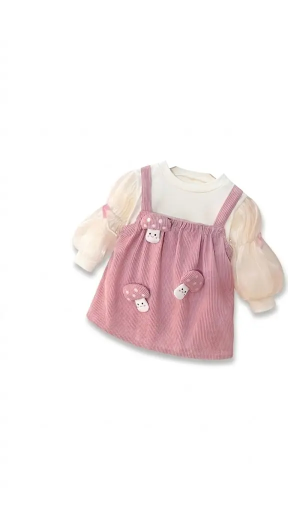 این ست دو تکه با ترکیب رنگ صورتی ملایم و بلوز سفید انتخابی رویایی برای روزهای خنک پاییزی و استایل آراسته دختران خردسال است. این لباس برای سنین ۹ ماه الی ۴ سال بسیار مناسب بوده و به دلیل طراحی هوشمندانه جلوهای دوستداشتنی و باوقار به ظاهر فرزند شما میبخشد. در این پوشش منحصربهفرد هماهنگی میان سارافون نخی کبریتی و بلوز آستین پفی که با طرحهای فانتزی قارچ تزئین شده است استایلی جذاب و متمایز را فراهم میسازد.