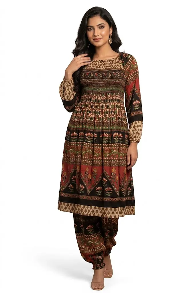 این ست پیراهن و شلوار نخی بسیار شیک و خوشدوخت برای خانمهایی با قد حداقل ۱۶۵ سانتیمتر طراحی شده است که با ترکیب رنگهای اصیل مشکی، سرخ و نقوش سنتی، جلوهای هنری و باوقار به استایل شما میبخشد. طراحی این مجموعه شامل یک پیراهن نیمتنه با آستینهای بلند مچدار و یک شلوار طرحدار هماهنگ است که برای استفاده در محافل دوستانه و روزمره انتخابی عالی و راحت محسوب میشود.