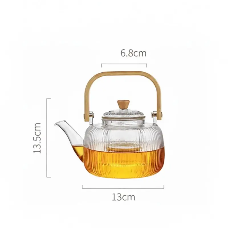 این محصول از شیشهی پیرکس باکیفیت ساخته شده که در برابر تغییرات دمایی مقاومت بسیار خوبی دارد و شفافیت خود را در درازمدت حفظ میکند. درب این چاینک نیز دارای طراحی هماهنگ با بدنه و یک قبهی چوبی کوچک است که جابهجایی آن را هنگام داغ بودن ظرف آسان میسازد. دستهی چوبی ارگونومیک آن با اتصالات فلزی مستحکم به بدنه وصل شده تا ایمنی کامل کاربر هنگام ریختن نوشیدنی تامین شود. مشتریان گرامی هنگام ثبت سفارش در انتخاب اندازه دقت کنند تا محصول مطابق نیازشان دریافت شود.