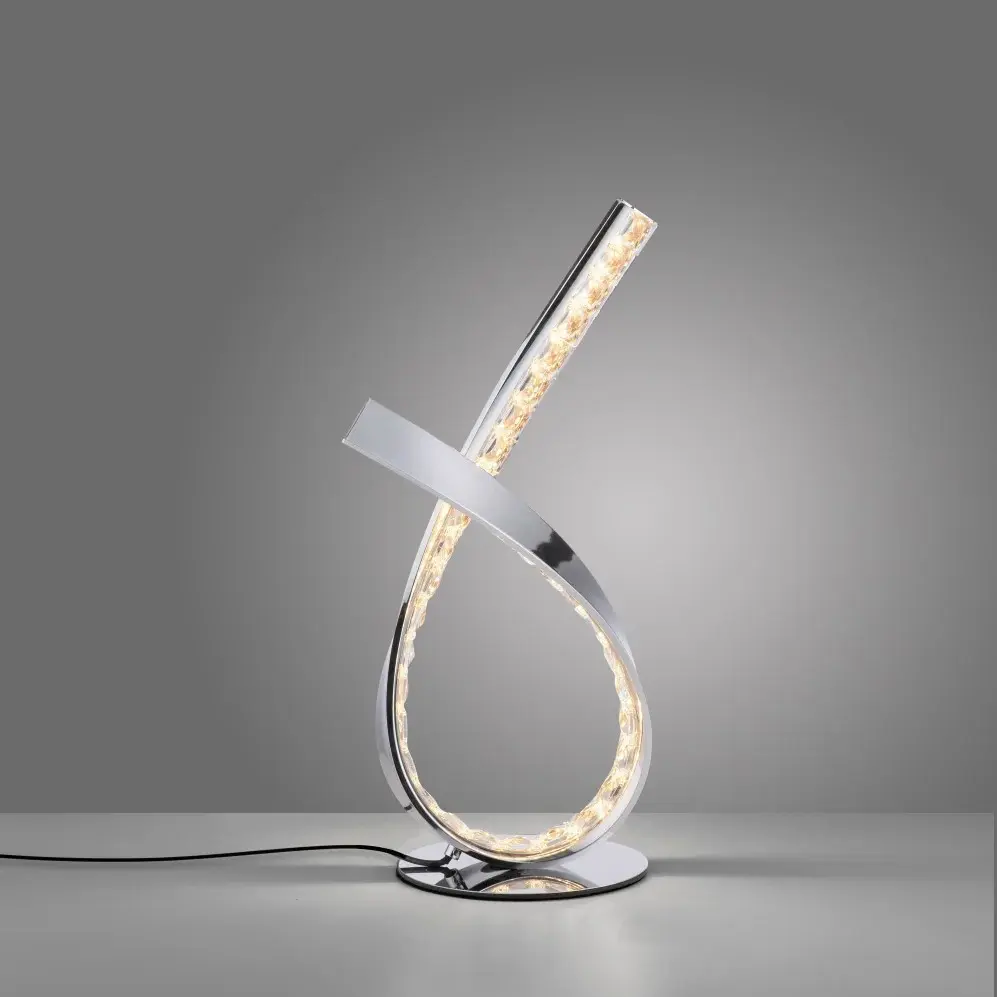 این چراغ رومیزی با طراحی منحصربهفرد و مارپیچ، یک اثر هنری مدرن برای تزیین دکوراسیون منزل یا دفتر کار شما محسوب میشود. ساختار ظریف و درخشان این چراغ به گونهای است که نور را به شکلی ملایم و چشمنواز در فضا پخش کرده و اتمسفری آرامبخش و لوکس در محیطهای شبانه ایجاد میکند. این محصول با بدنه فلزی صیقلی و بخشهای نورانی داخلی، انتخابی بینظیر برای میزهای کناری در سالن پذیرایی یا به عنوان چراغ خواب در اتاقهای خواب مدرن است.