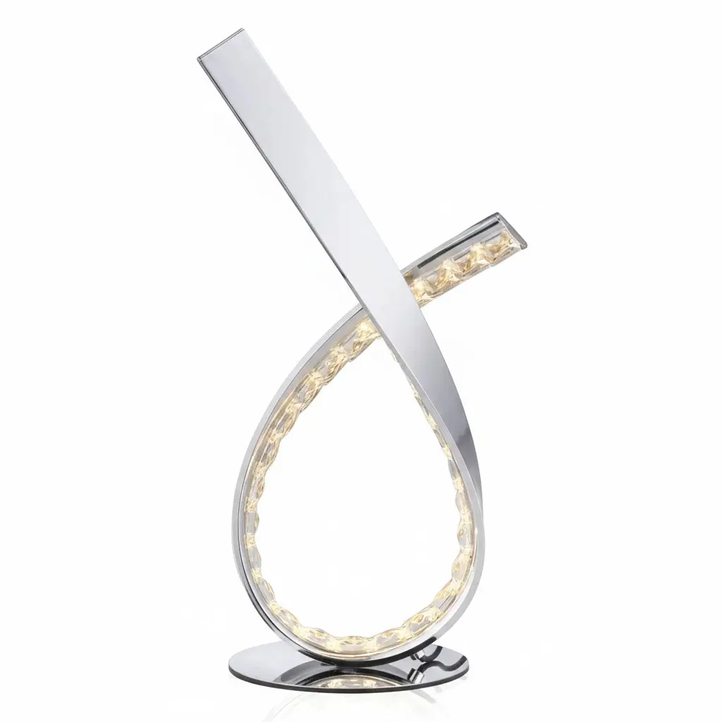 بدنه این چراغ از فلز با روکش کروم براق ساخته شده که با قطعات ریز کریستالی در قسمت داخلی منحنی تزیین شده است تا تلالو نور را دوچندان کند. پایه دایرهای و تخت آن ثبات کامل چراغ را بر روی سطوح مختلف تضمین کرده و با استفاده از کابل برق متصل به پشت دستگاه به راحتی راهاندازی میشود. با توجه به سبک خاص طراحی و ابعاد این کالای تزیینی، مشتریان گرامی هنگام ثبت سفارش در انتخاب اندازه دقت کنند تا محصول مطابق نیازشان دریافت شود.