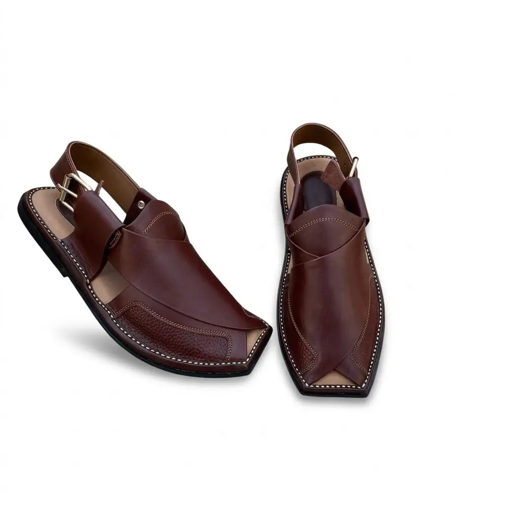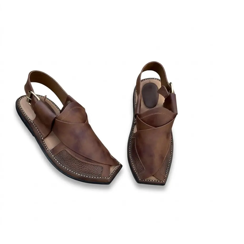 چپلی پیشاوری چرمی با دیزاین دست‌ دوز