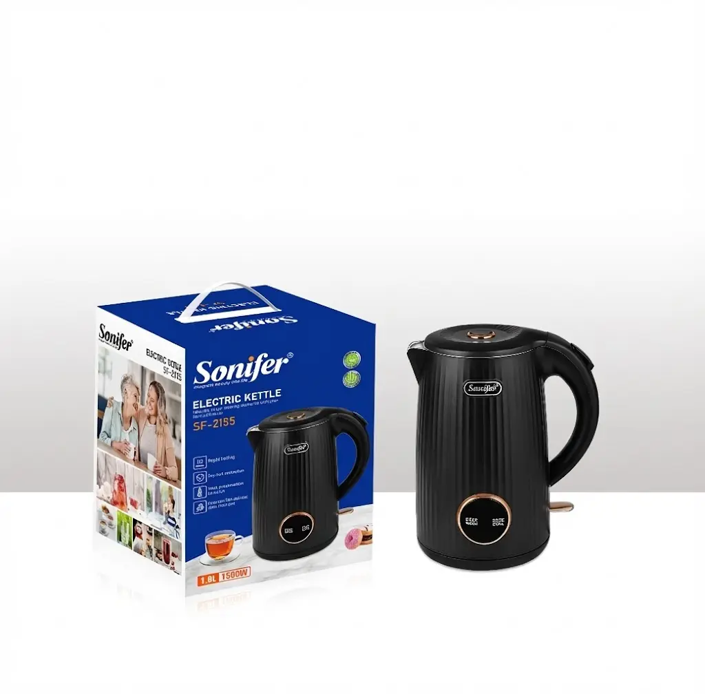 برای کسانی که به دنبال ترکیبی از تکنولوژی و زیبایی در آشپزخانه خود هستند، کتل برقی Sonifer مدل SF-2155 انتخابی بینظیر است. این دستگاه با توان ۱۵۰۰ وات، آب را در کوتاهترین زمان ممکن به نقطه جوش میرساند. ظرفیت مخزن آن ۱.۸ لیتر است که برای خانوادهها و دفاتر کاری کاملاً مناسب است. ویژگی متمایز این کتل، داشتن پنل لمسی و دیجیتال در قسمت پایین بدنه است که امکان انتخاب بین "جوش آوردن سریع (Fast Boil)" و "گرم نگه داشتن (Keep Warm)" را به شما میدهد. بدنه داخلی این محصول از استیل ضد زنگ ۳۰۴ یکپارچه (Seamless) ساخته شده که سلامت آب را تضمین کرده و تمیز کردن آن را آسان میکند. همچنین سیستمهای ایمنی مانند محافظت در برابر خشک جوشیدن طول عمر دستگاه را افزایش میدهد. ما تضمین میکنیم کالای ارسالی دقیقاً مشابه عکس است؛ پس با خیالی راحت خرید کنید.