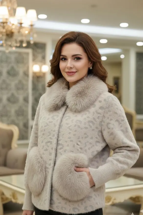 این کرتی مجلل با طراحی عصری و طرحهای پلنگی ملایم، گزینهای بسیار شیک برای خانمهایی است که به دنبال استایلی متمایز در فصلهای خرد و معتدل هستند. با توجه به طراحی و مشخصات این محصول، این کالا در سه سایز XL, XXL, M عرضه میگردد. وجود یقه و لبههای جیب مزین به خز نرم، نه تنها گرمای بیشتری را فراهم میکند، بلکه جلوهای اشرافی و مدرن به این لباس بخشیده است.