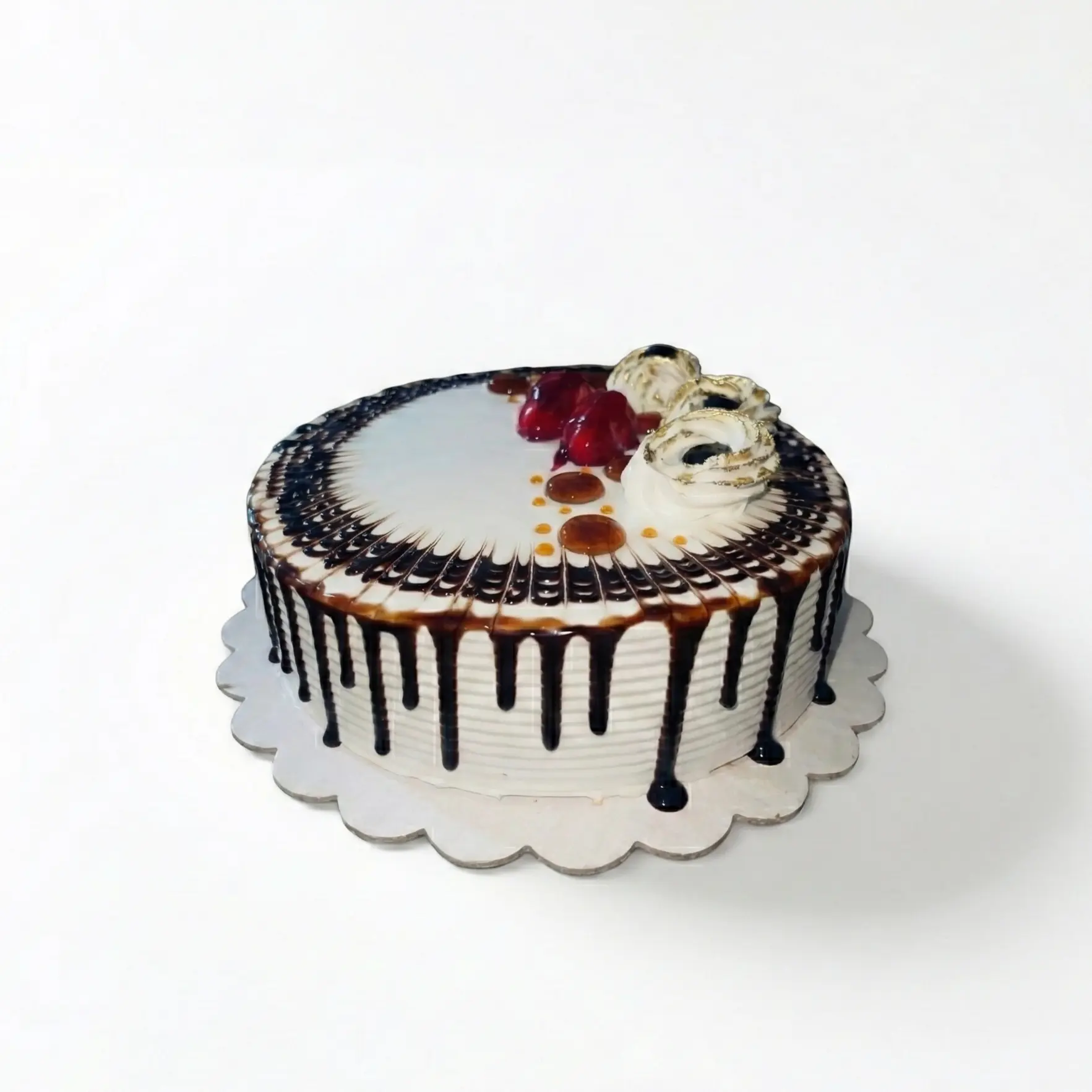 این کیک که به طور خاص برای تجلیل از فرهنگیان طراحی شده است، ظاهری رسمی و شیک را با طعم محبوب شکلات و اوریو ترکیب می‌کند. الگوی توری/چهارخانه کاکائویی در کناره‌ها بافتی زیبا به آن می‌بخشد، در حالی که تزیینات بالای کیک با بیسکویت‌های ترد و شمع قلب، جلوه‌ای صمیمانه ایجاد می‌کند. این کیک برای جشن‌های مکتب، پوهنتون یا به عنوان یک هدیه شخصی به معلم مورد علاقه شما ایده‌آل است.